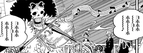 ブルックが『ビンクスの酒』を歌うとクジラたちはご機嫌になしました