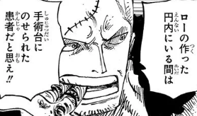 能力で肉体を切断されても痛みや出血はなく、感覚や身体機能に影響は生じないオペオペの実の能力者です