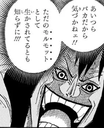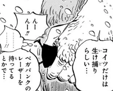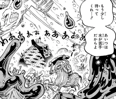 シーザー・クラウンが悪魔の実を食べさせているので、他の能力者同様、水が苦手です