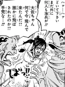皆殺しにしようとシーザーが逃げ道を塞いで来ましたが、海軍の仲間がたしぎを扉の内側へと投げ込んだのでした