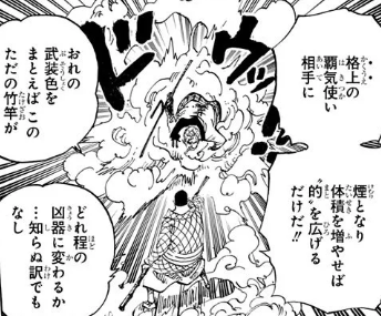 ただの竹竿ですが、武装色の覇気を纏わせる事で凄まじい威力を発揮してます