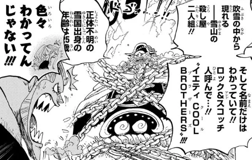 毛むくじゃらな雪男のような容姿だが並みの巨人より長身な2人組の殺し屋コンビです