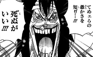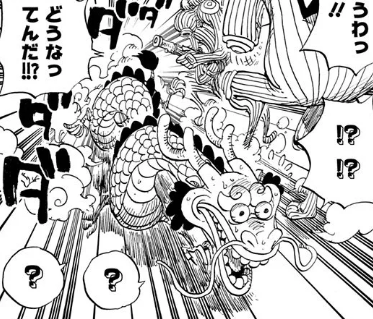 ベガパンクが作った人造悪魔の実の「ウオウオの実」を食べ、モデルが青龍ののため竜になってしまいました