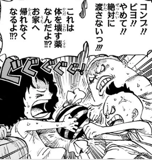 覚醒剤の禁断症状を起こしている子ども達に襲われる寸前のウソップとサンジ(ナミ)を助けたのは誰だったでしょう?