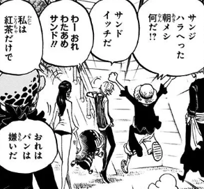 みんながサンジが作ったサンドイッチを食べようとしているときに、思わず嫌いと言ってしまいました