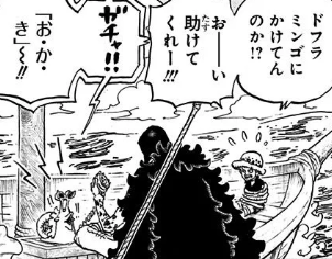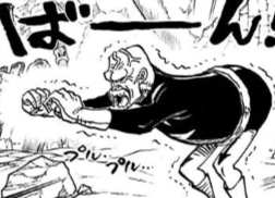 猿山連合軍のモンブラン・クリケットが黄金を持っているという噂を聞きつけ偶然ルフィらがサウスバードを狩りに行ったタイミングで襲撃しましたが、ワンパンでやられてしまいました