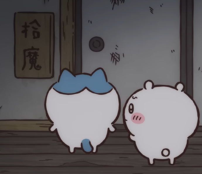 ちいかわがあまりにも緊張しすぎて、ハチワレを押してしまい、転んでしまいました。