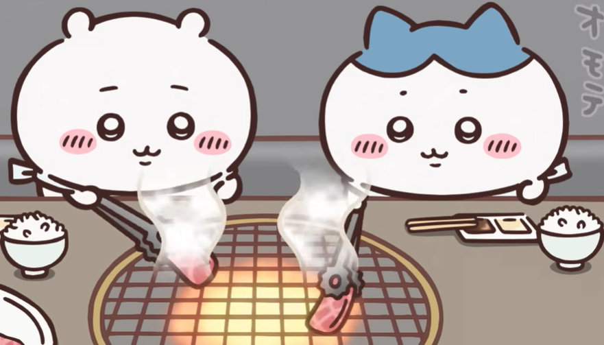 ゲームの上位ランカーになったちいかわとハチワレをラッコが焼肉に連れて行ってくれました