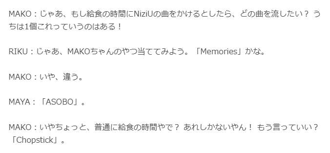 Amazonミュージックのプレイリスト「もう聞いた? NiziU MAKO's Mix」でマコが選んだNiziUの曲は何でしょう?