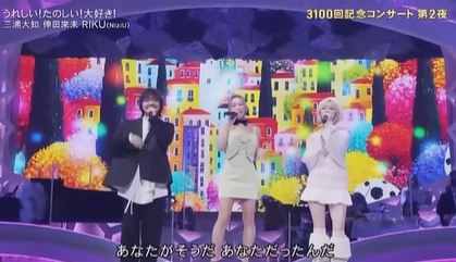 ミュージックフェア3100回記念で、リクと一緒に「うれしい!たのしい!大好き!」を歌ったのは倖田來未と誰だったでしょう?